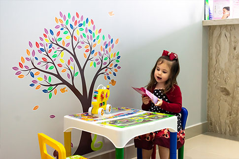Dispomos de 2 salas de vacinação diferenciadas com acessibilidade para atendimento e 1 sala exclusiva para procedimentos. Enquanto você aguarda para ser atendido, a criança pode brincar, ler histórias infantis e também assistir ao seu filme preferido.
